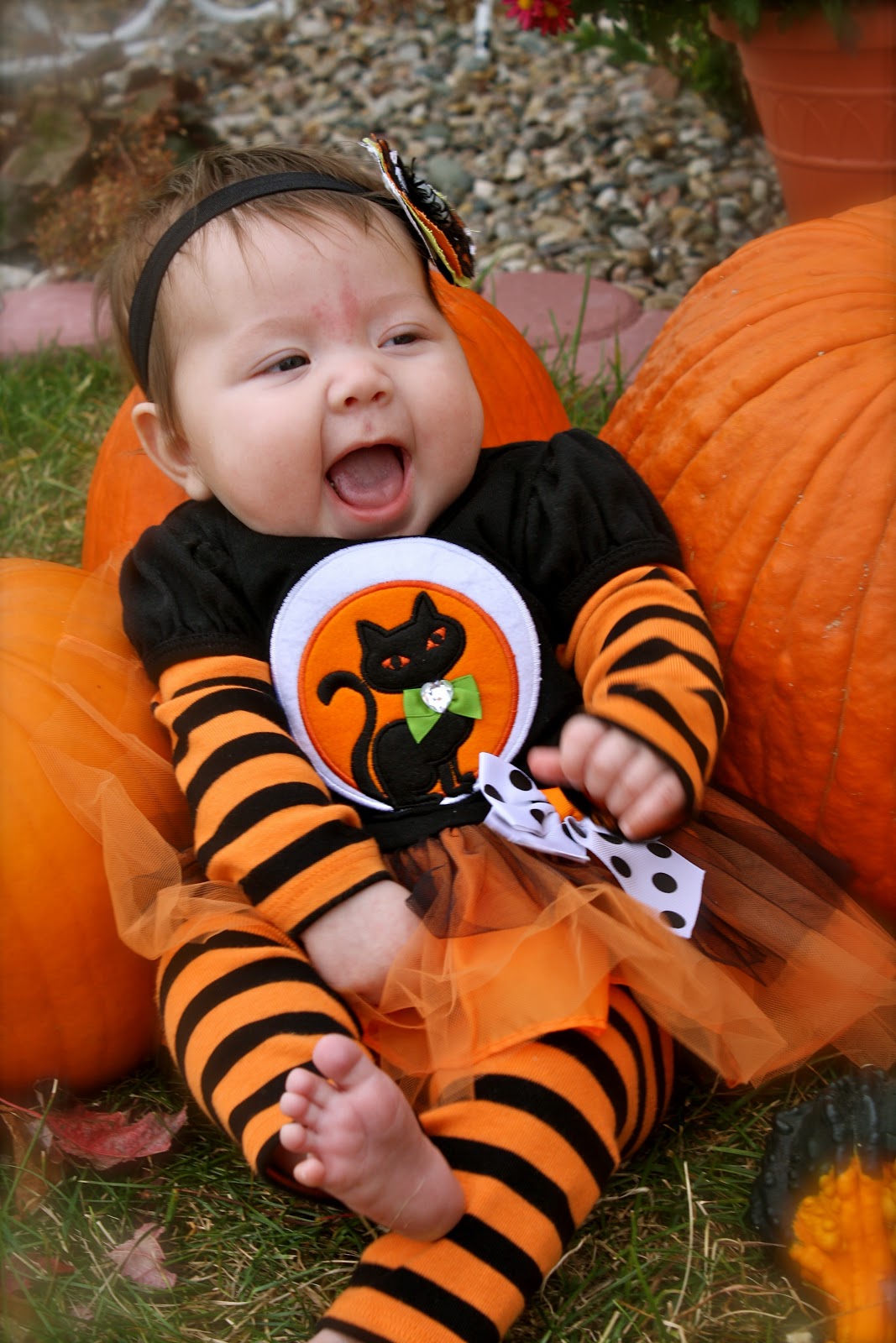 I love her little bow with the kitty in the middle. A cat is kind of her "thing" this Halloween. It just sort of happened, I found this cute outfit, and her Halloween costume, then this bow sort of fell in my lap so I couldn't resist!