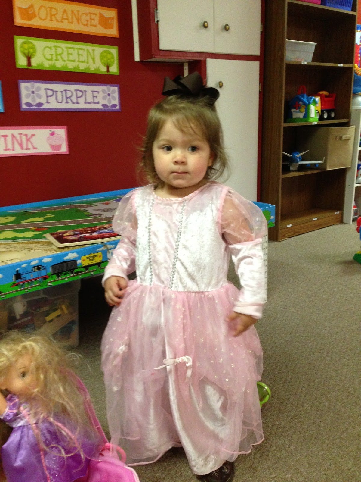 And the best news yet? We found day care for Kerigan! Woo hoo! After searching and searching with not much luck or much to choose from, we stumbled upon this when I was about to give up. Craig was told that his golf coach's wife does in home day care. I told him to ask immediately! Well, turns out she was full. But then when she found out Kerigan would only be part time (on days I am substitute teaching), she said she'd take her! And you can imagine how thrilled I was when we pulled up to meet them and her little girl, Lily, was standing outside ready to greet us in a princess dress! Then she quickly ran and got one for Kerigan. Not to mention there are two other 2 year old girls that will be here. Ashley is a former preschool teacher and her basement looks like an adorable little classroom with fun things posted all over, a "carpet" area for story time, etc. It was like a little school room, which I loved! I'd say it is a match made in heaven! Just another reminder that I'm not in control and that when the time is right, God will bring just the right people into our lives!