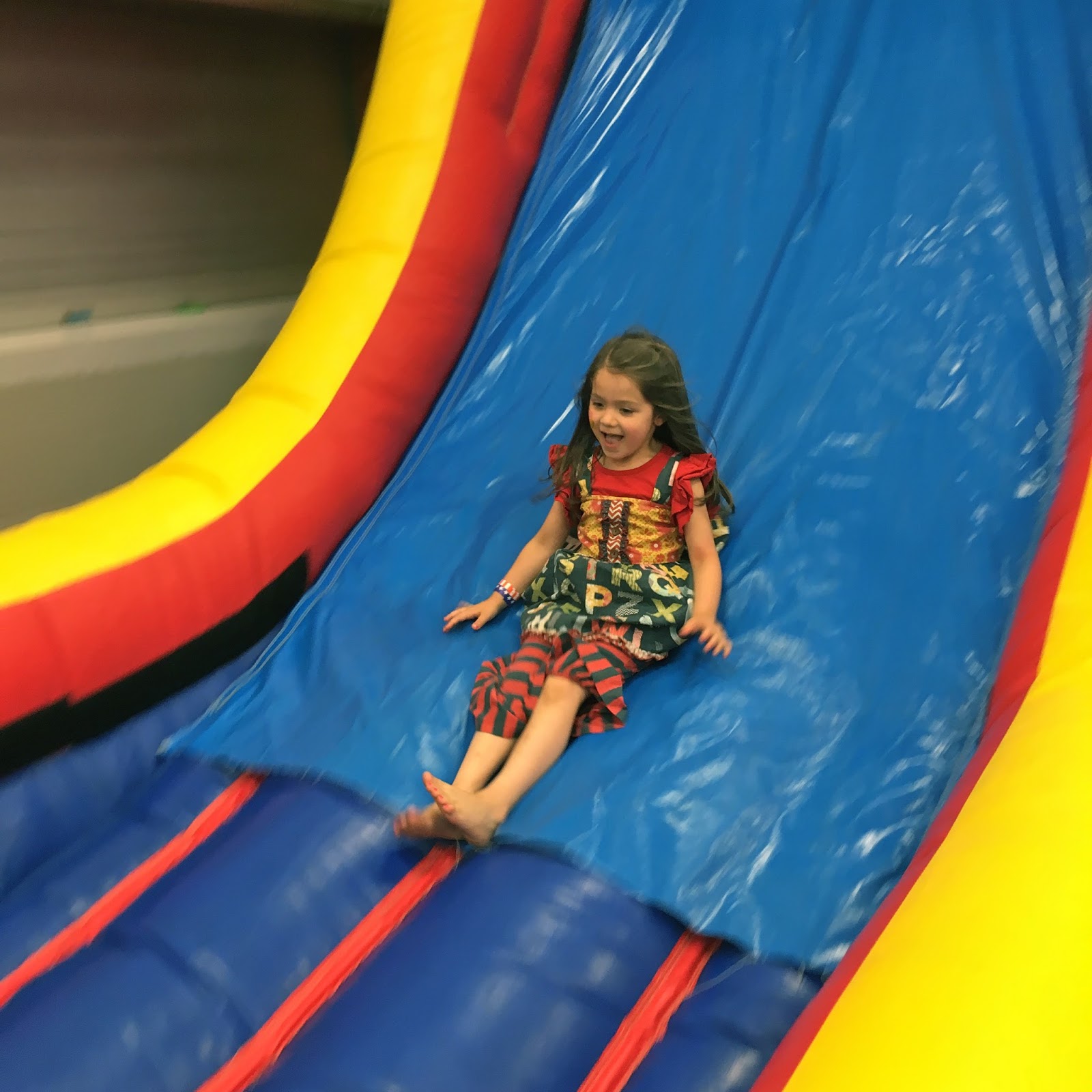 They had all kinds of games set up, bounce houses, prizes, etc. It was supposed to be outside, but rain was predicted and coming in on radar in the afternoon so they moved it indoors just in case. It didn't end up raining, but it was fun inside anyway!