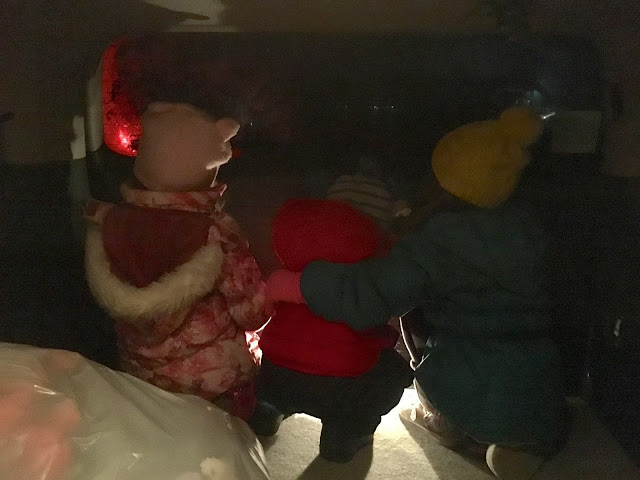 Then the kids all piled in the back of Megan's car to watch the fireworks out the window because it was SO COLD.